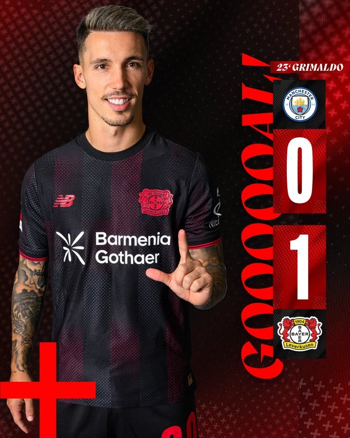 北京时间11月26日,在欧冠联赛阶段第5轮的比赛中,格里马尔多开场第25分钟禁区内抽射破门,帮助勒沃库森在客场1-0领先曼城结束上半时的较量。