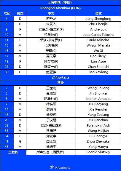 申花vs神户:米内罗、路易斯首发,吴曦、马纳法出战