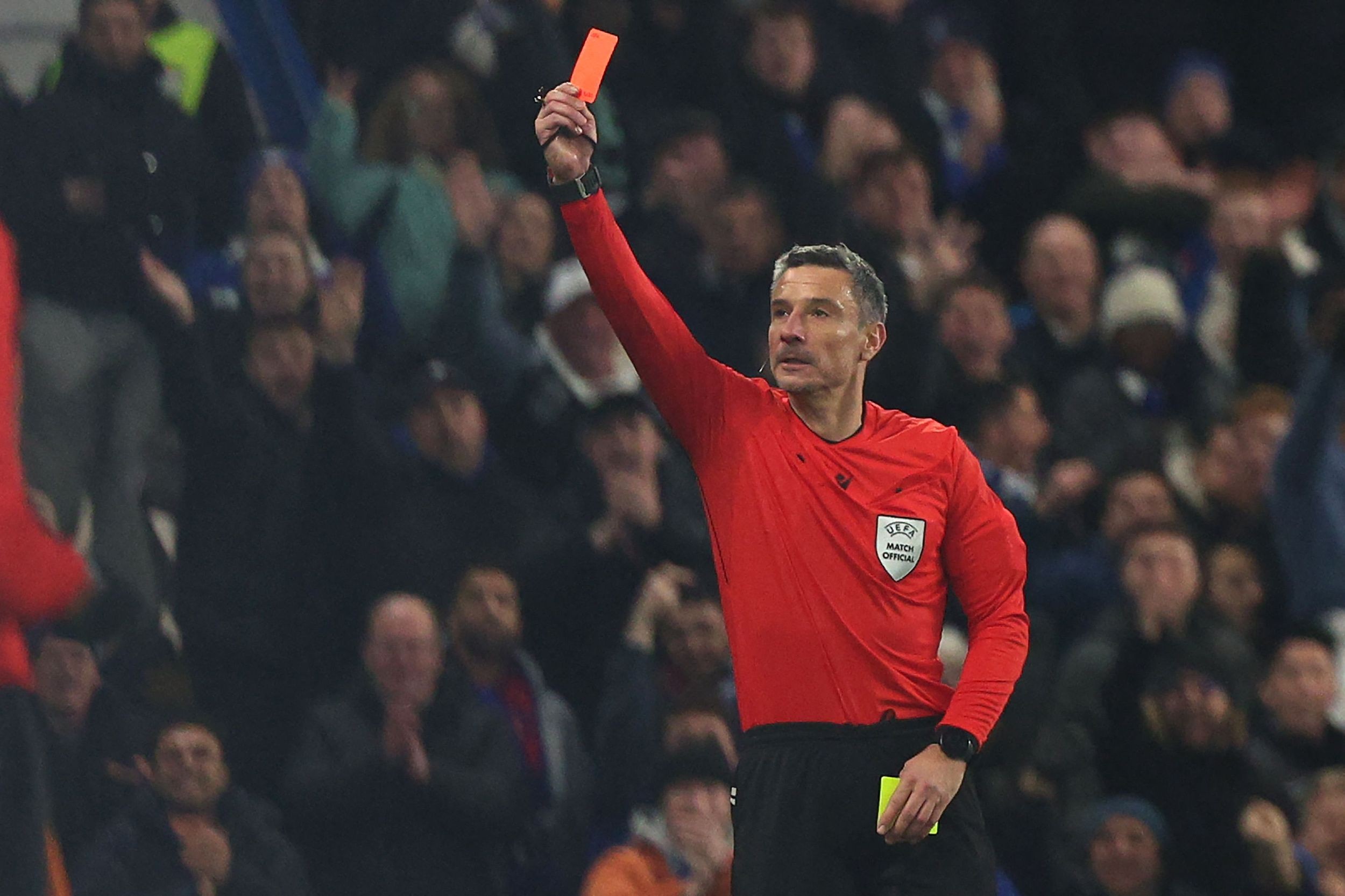 2025年11月26日 欧冠联赛阶段 阿劳霍第44分钟两黄变一红被罚下
