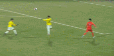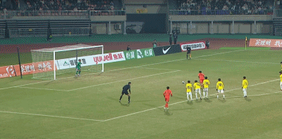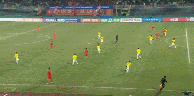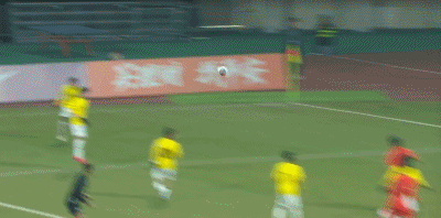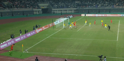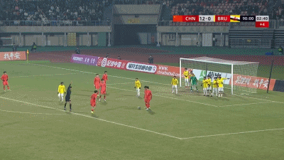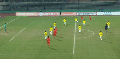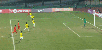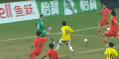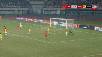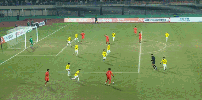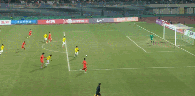 第90+4分钟,对手门将送禁区内间接任意球,中国队多次射门被封堵