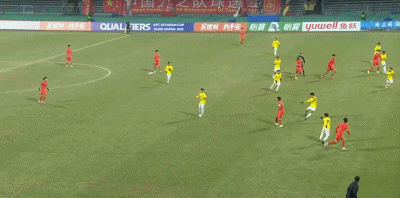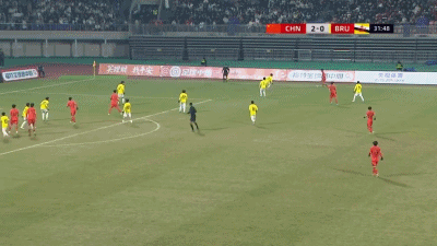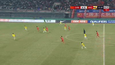 第45+4分钟,两传一射,万项门前抢点破门,中国队4-0领先