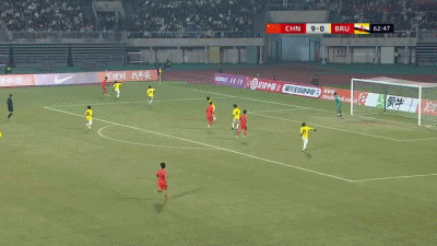 第58分钟,五子登科,赵松源补射得分,中国队9-0