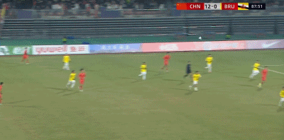 第74分钟,帽子戏法,张伯霖推射破门,中国队11-0