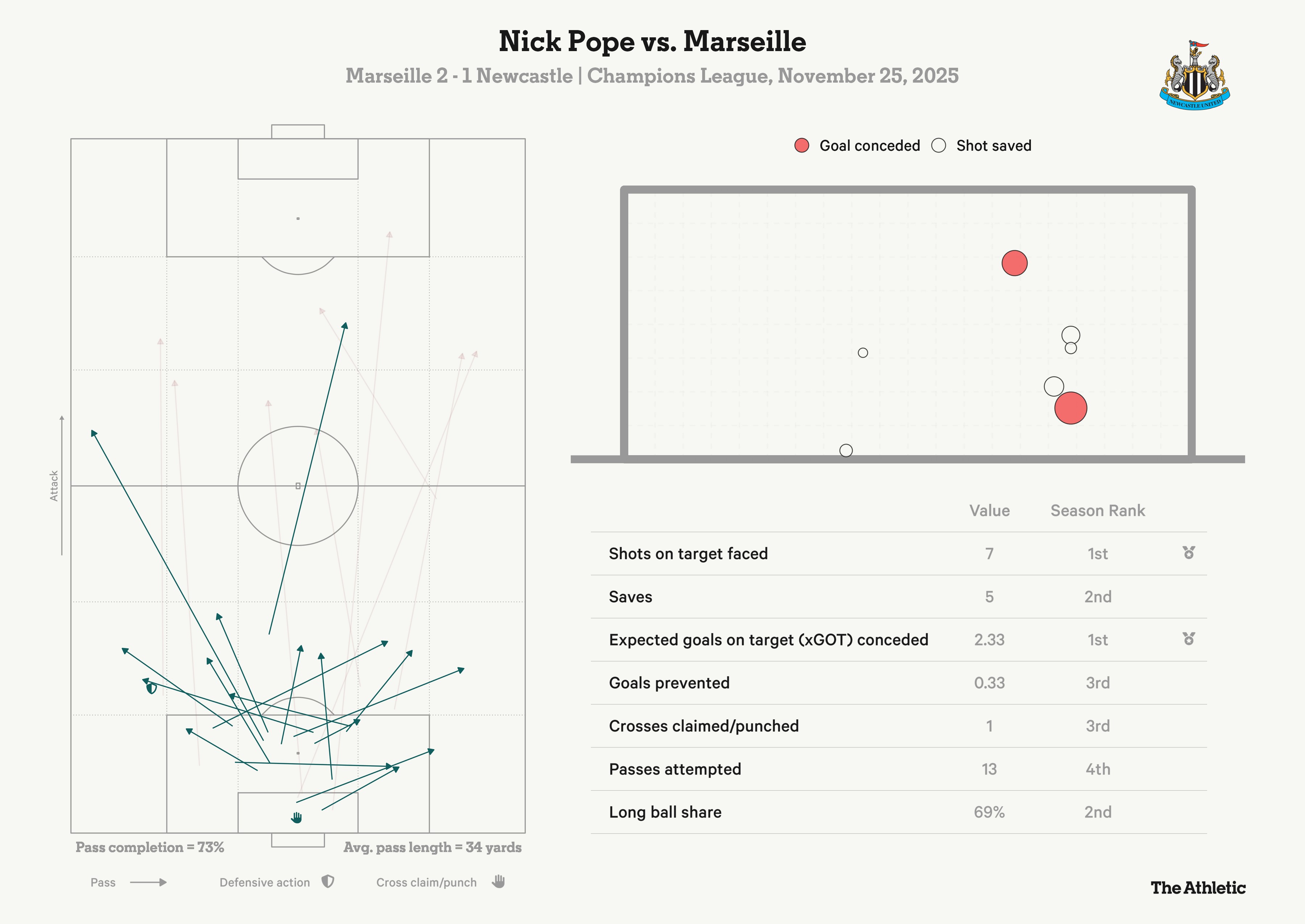 随之而来的是纽卡斯尔防守的彻底混乱。四分钟后,奥巴梅扬打入了当晚个人第二球,也是他九次面对纽卡斯尔打入的第八球。对于马赛的制胜球,波普绝无直接责任,但他的失误导致了球队阵型的暂时失控。