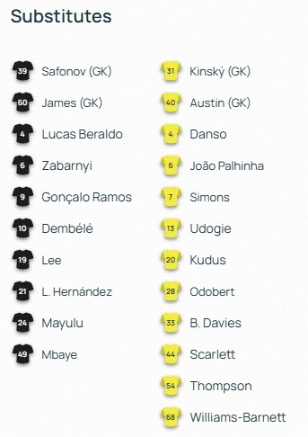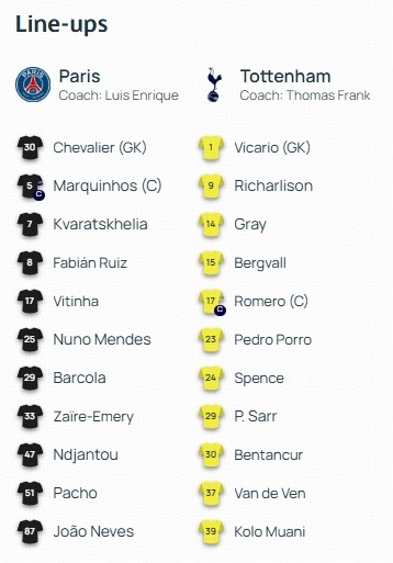 巴黎vs热刺:巴尔科拉、恩贾恩图首发,里沙利松、穆阿尼出战