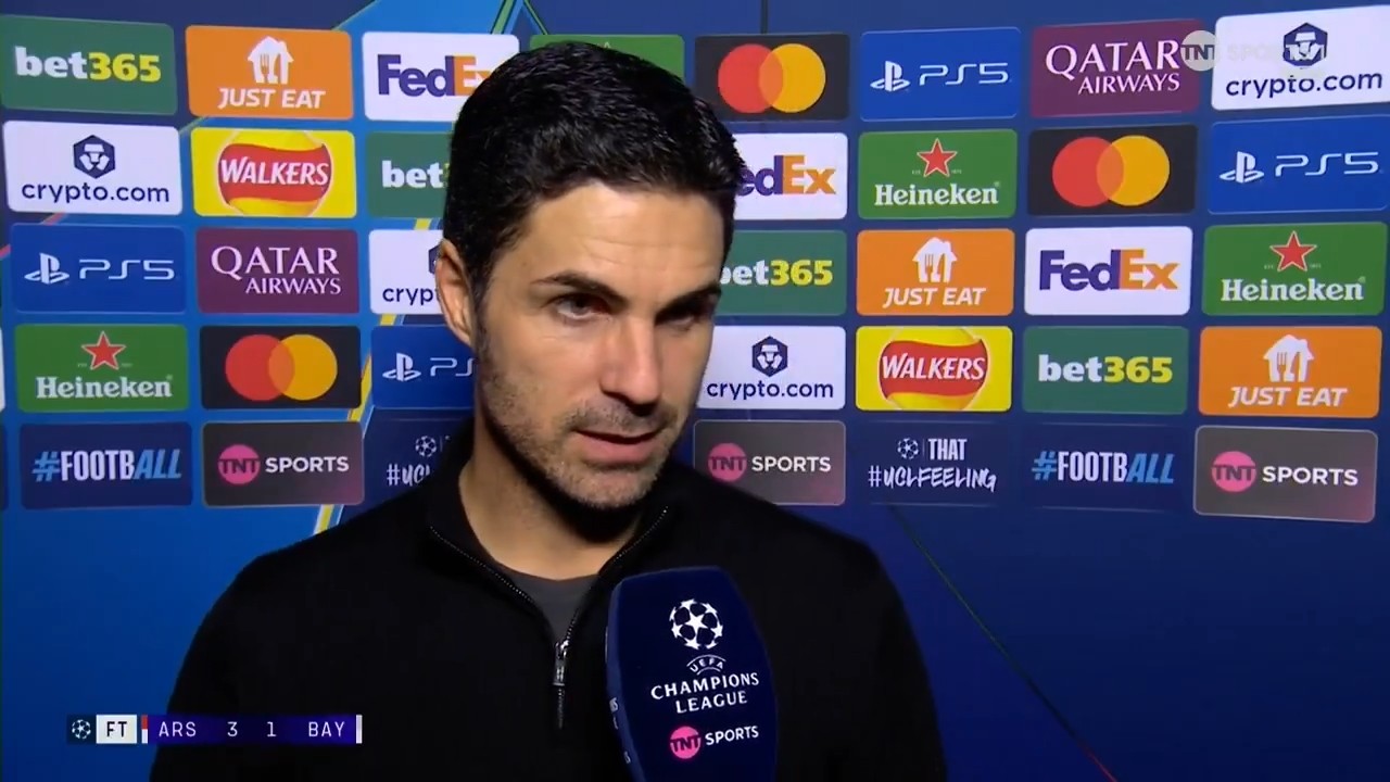 率队在欧冠联赛阶段第5轮主场3-1战胜拜仁慕尼黑之后,阿森纳主教练阿尔特塔接受了来自TNT体育的采访。