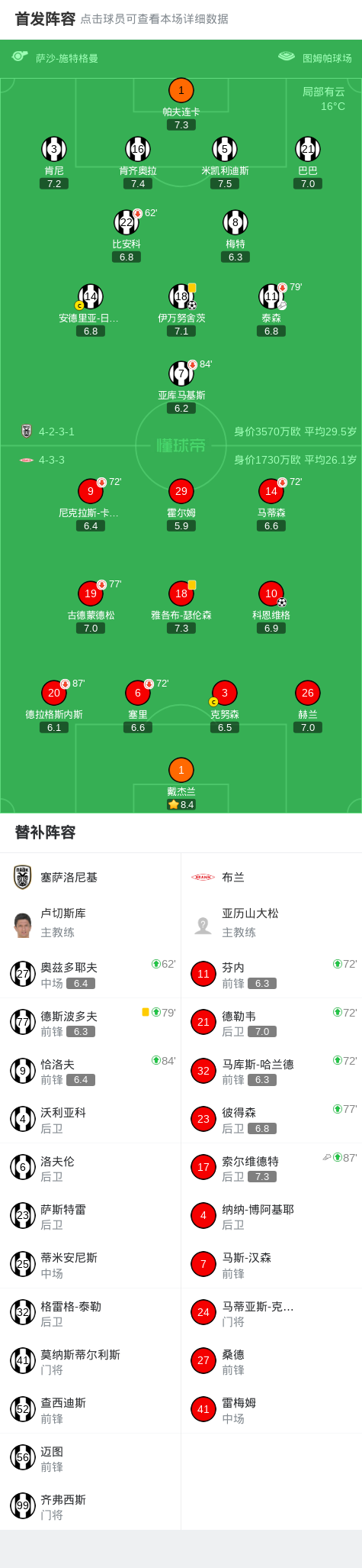 第64分钟,塞萨洛尼基球员泰森助攻伊万努舍茨打入一球。