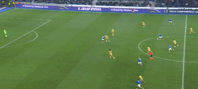 第37分钟,斯特拉斯堡门将出击失误,萨尔推射空门中柱