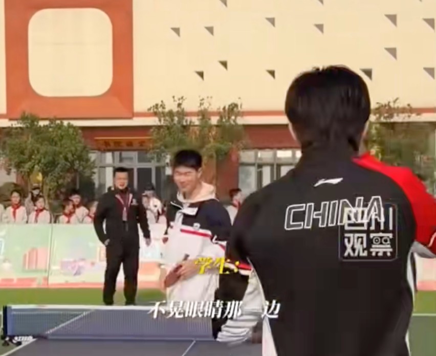在王楚钦和一名学生球员的比拼环节,小球员选择了球权,王楚钦立马表示:你选了球,我挑场地。