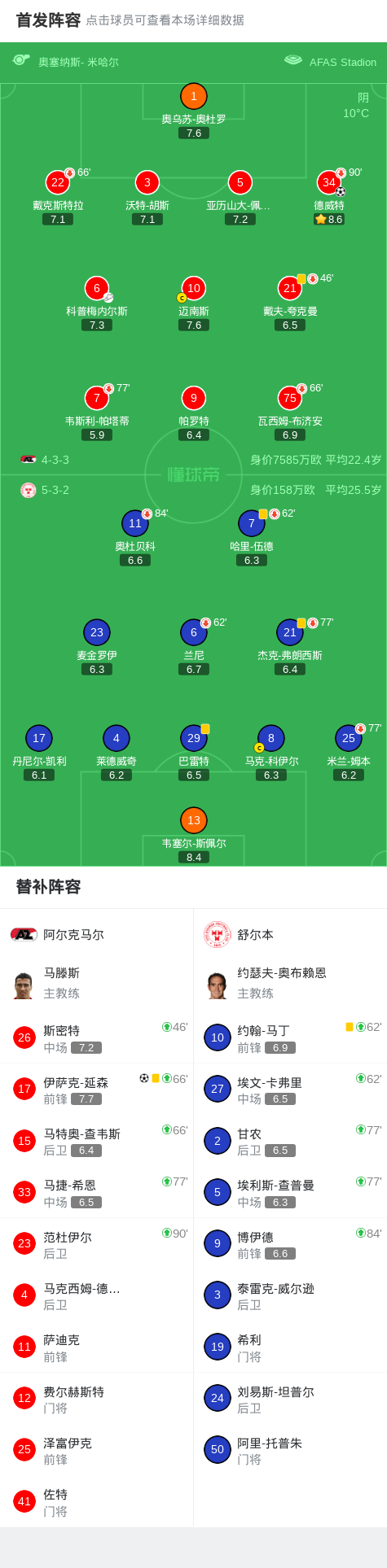 第70分钟,阿尔克马尔球员科普梅内尔斯助攻德威特打入一球。