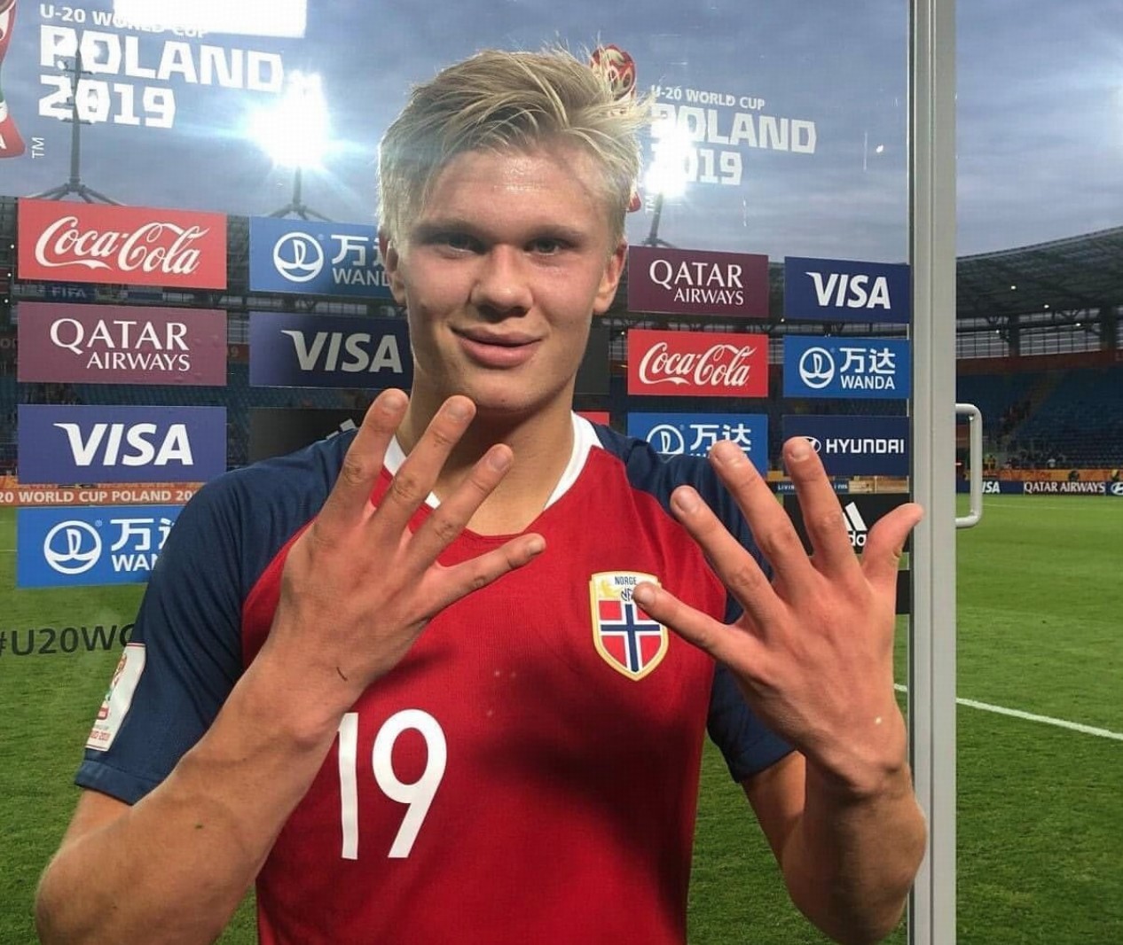 2019年5月30日,U20世界杯小组赛第三轮,挪威12-0狂胜洪都拉斯,当时未满19岁的哈兰德单场9球,这几乎是足球世界第一次记住他的名字。随后,哈兰德迅速进入了世界最强中锋行列。