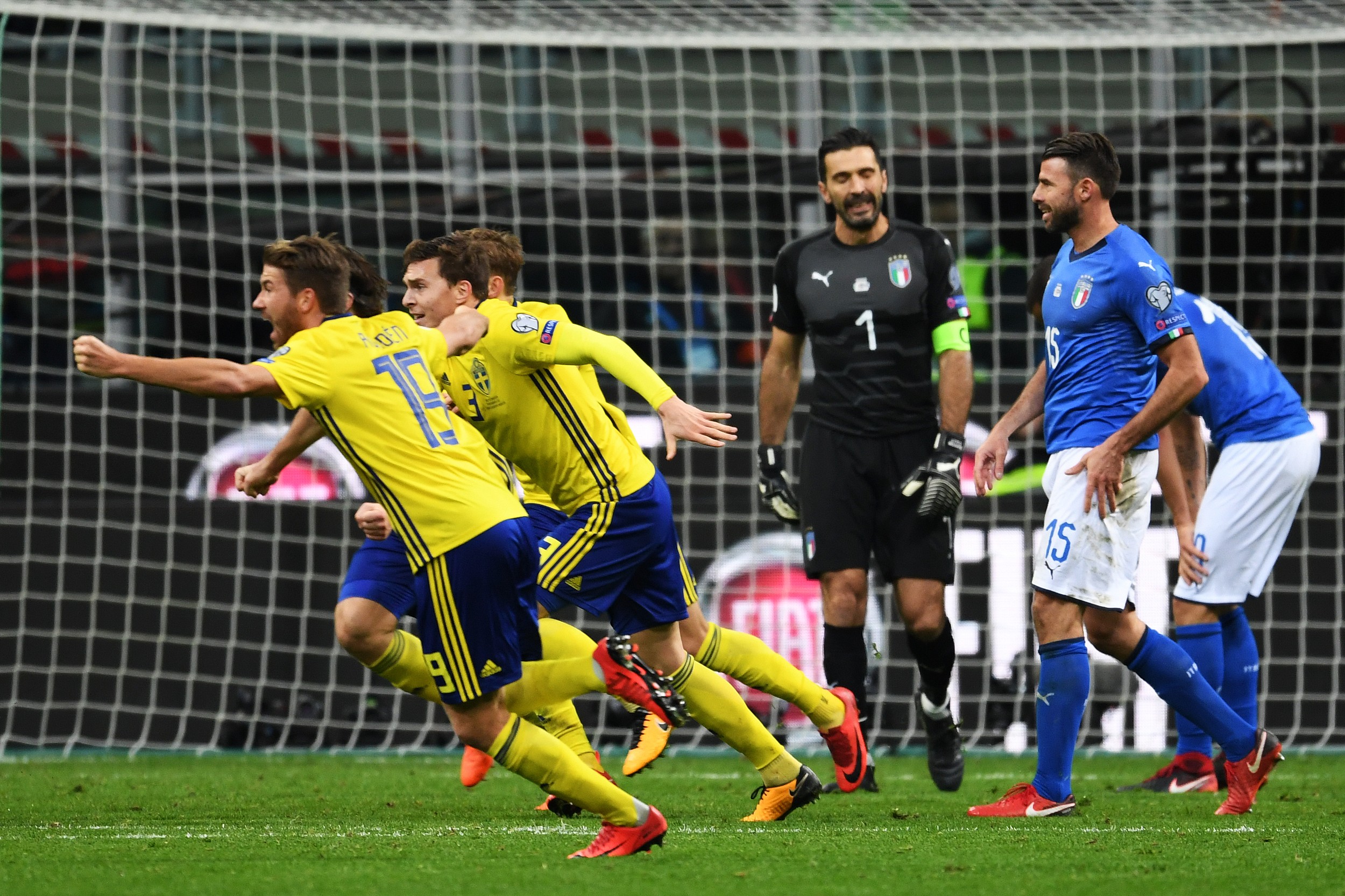 2017年11月13日,世预赛欧洲区附加赛次回合,意大利0-0瑞典两回合0-1出局,60年来首次无缘世界杯决赛圈。终场哨响的瞬间,老将布冯神情落寞。