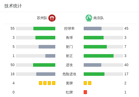 第48分钟,滕帅禁区前劲射破门,南京队1-0苏州队,总比分1-3扳回一球