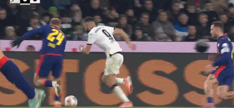 第43分钟,努萨抢断后禁区内倒地,主裁判未予判罚