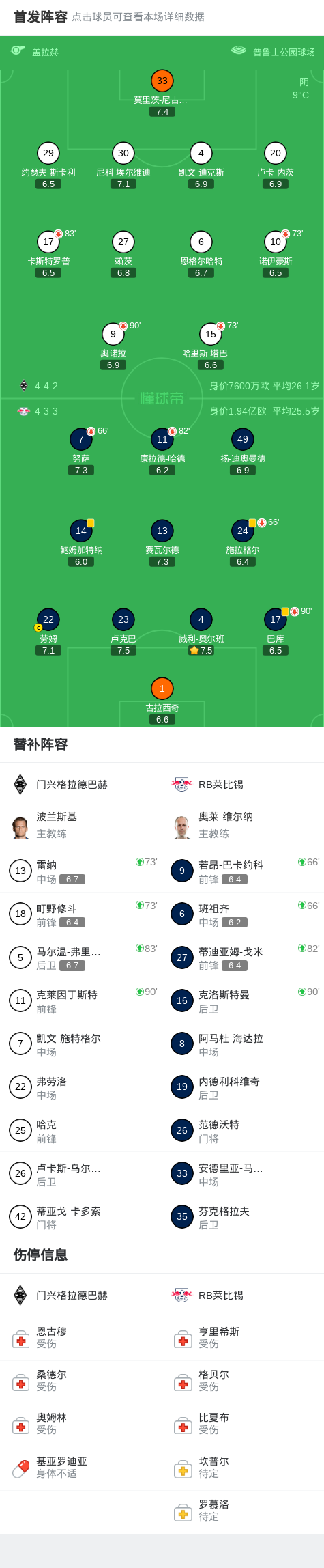 北京时间11月29日德国足球顶级联赛 联赛 第12轮,门兴格拉德巴赫主场对阵RB莱比锡。最终比分门兴格拉德巴赫 0–0 RB莱比锡。