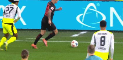 第41分钟,安塞尔米诺力压防守头槌破门,多特1-0!
