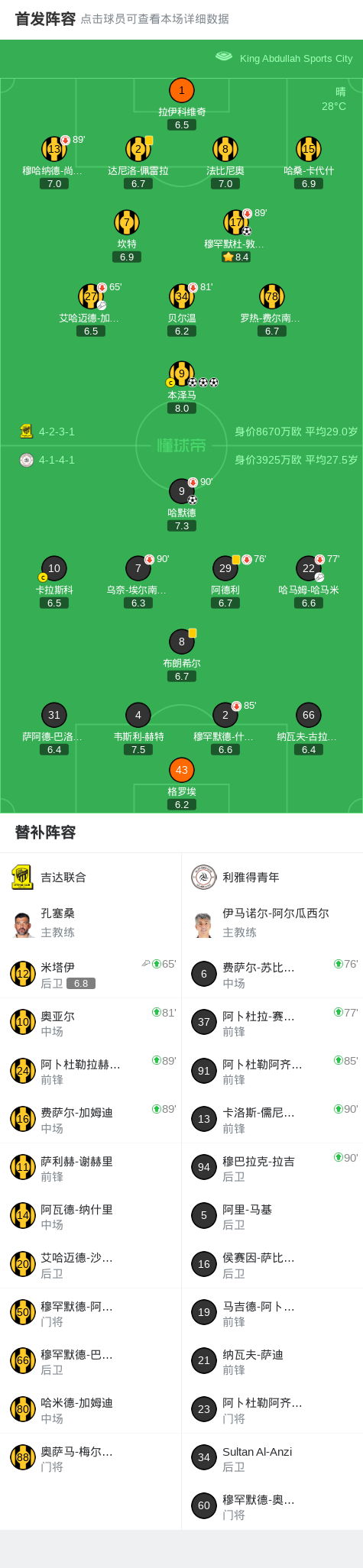 第20分钟,吉达联合球员艾哈迈德-加姆迪助攻穆罕默杜-敦比亚打入一球。