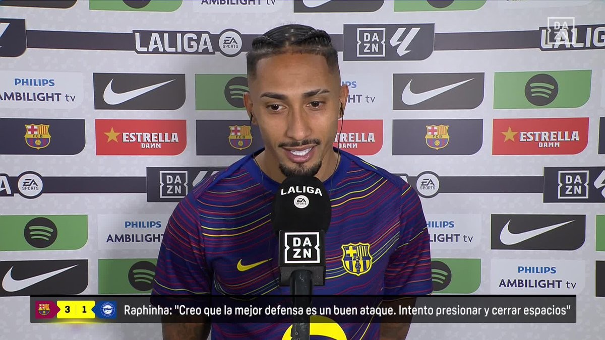 帮助球队3-1击败阿拉维斯后,巴萨前锋拉菲尼亚接受了媒体采访,此役他助攻奥尔莫打入反超比分的关键进球。