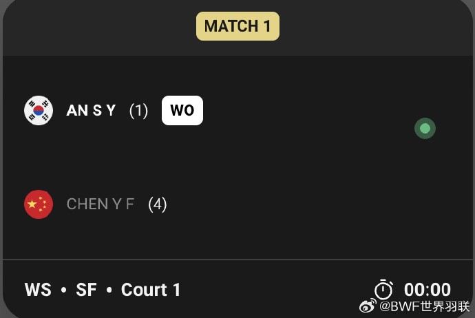 这场半决赛原定于明天早上10点开始,另外一场半决赛将由中国选手王祉怡对阵印度名将辛杜。