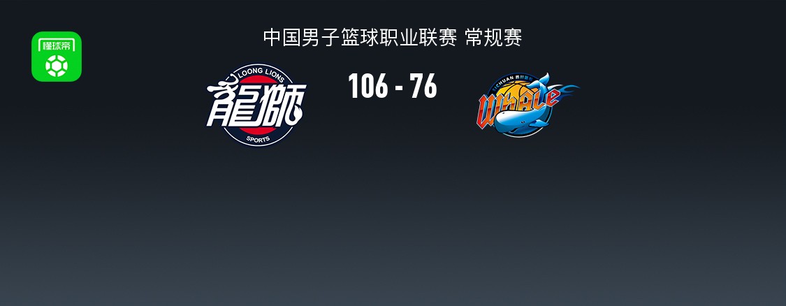 第四节广州埃里克-托马斯拿下6分,四川杜智博拿下7分,最终广州106-76战胜四川