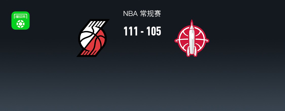 第四节开拓者阿夫迪亚拿下7分,火箭杜兰特拿下7分,最终开拓者111-105战胜火箭