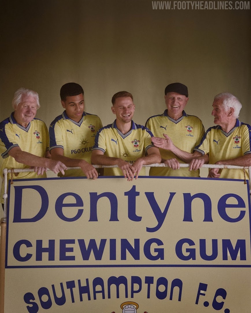 这款纪念球衣由彪马(Puma)设计,整体灵感源自1976年足总杯决赛时南安普顿所穿的经典黄蓝色客场球衣,在复古基调的基础上融入了现代设计语言。球衣以柔和的黄色为主色,领口与袖口点缀蓝色细节,唤起球迷对那段辉煌岁月的记忆。