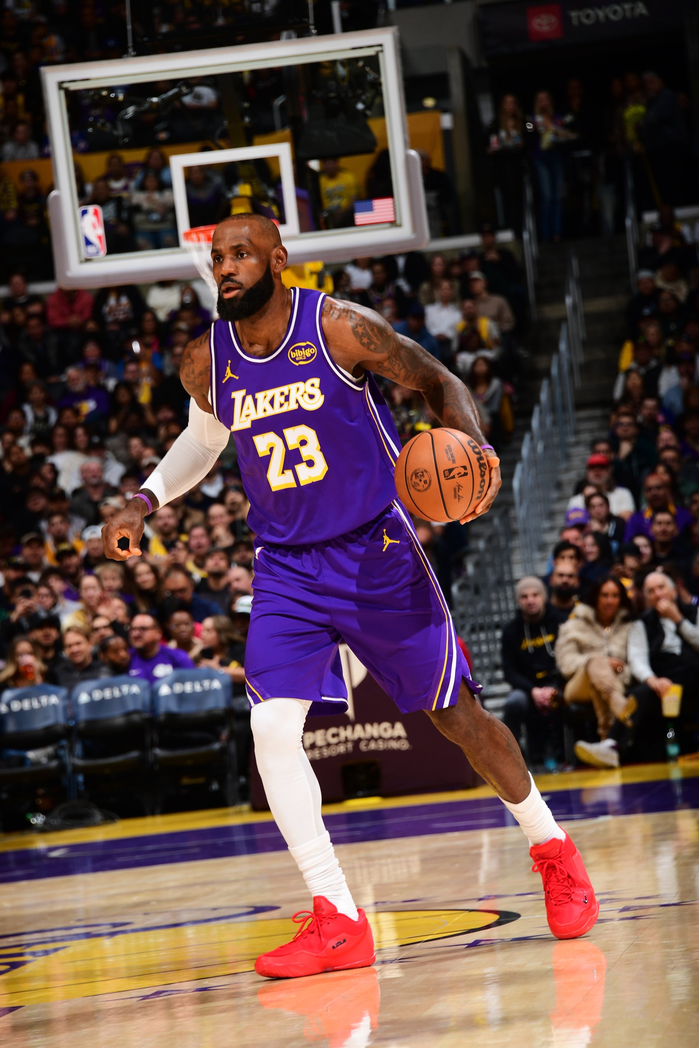 本场比赛,湖人球星勒布朗-詹姆斯伤愈复出,全场比赛他出场32分51秒,21投10中得到了26分9篮板10助攻3抢断,三分球7中2,罚球6中4,出现了3次失误和1次犯规,正负值为+8。