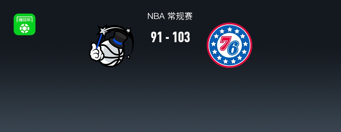 第四节魔术贝恩拿下6分,76人保罗-乔治拿下10分,最终魔术91-103不敌76人