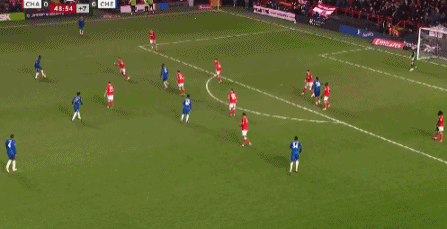 第45+5分钟,哈托禁区左路凌空爆射破门,切尔西1-0查尔顿