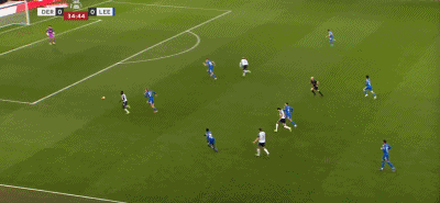 第35分钟,布里尔顿混战中破门,德比郡1-0领先利兹联