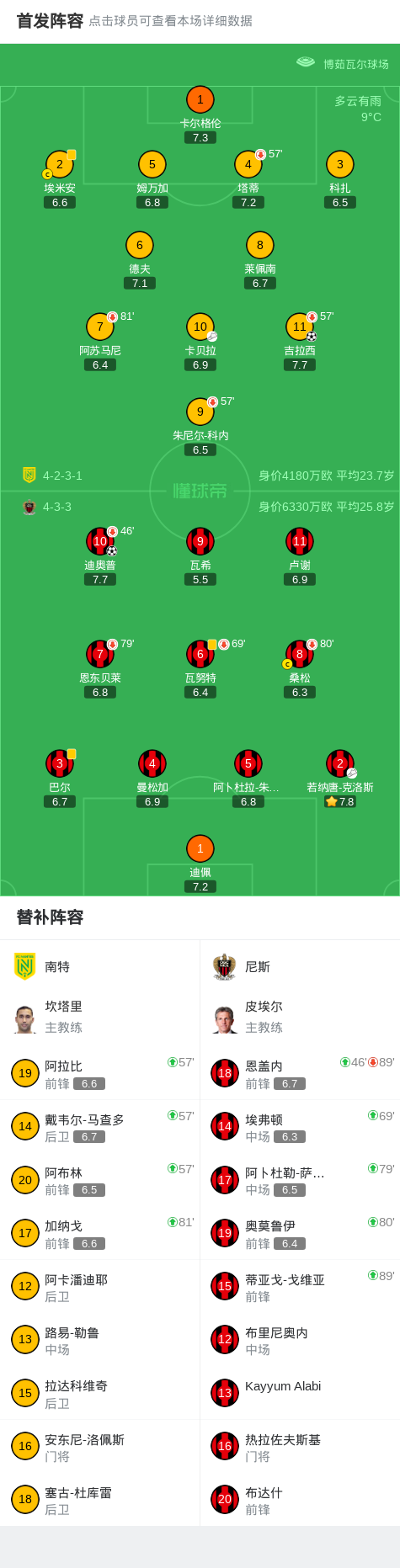 第52分钟,南特球员卡贝拉助攻吉拉西打入一球。