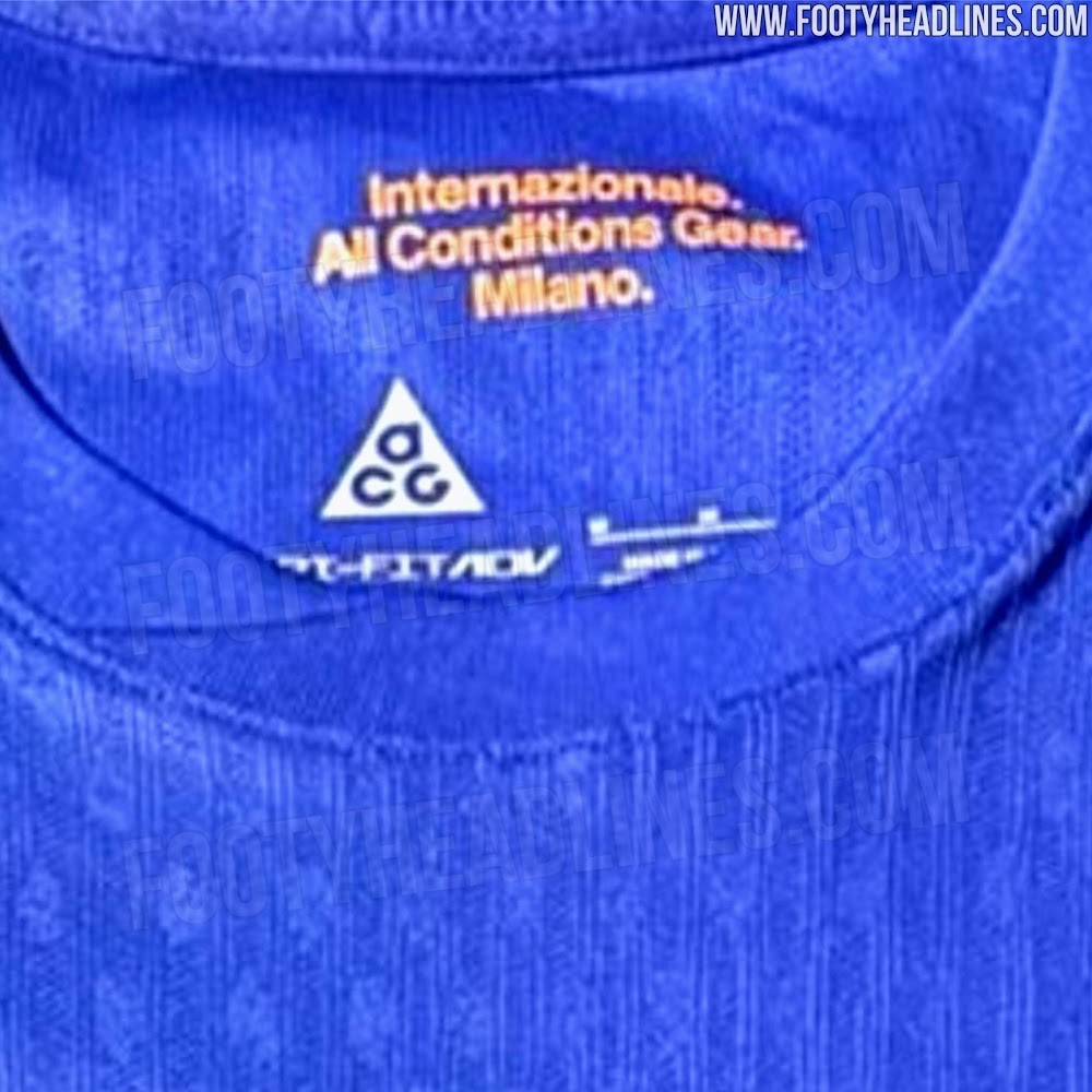 领口内侧印有橙色的“Internazionale. All Conditions Gear. Milano.”字样,以及ACG的标志。这款第四球衣的队徽也采用了特殊的边框设计,其灵感可能来源于月桂花环。