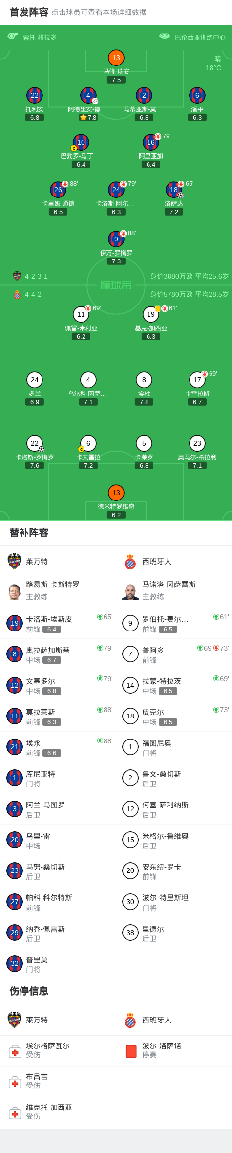 北京时间1月11日西班牙足球甲级联赛 联赛 第19轮,莱万特主场对阵西班牙人。莱万特洛萨达破门。西班牙人卡洛斯-罗梅罗破门。最终比分莱万特 11 西班牙人。