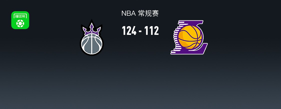 第四节国王德罗赞拿下9分,湖人文森特拿下6分,最终国王124-112战胜湖人