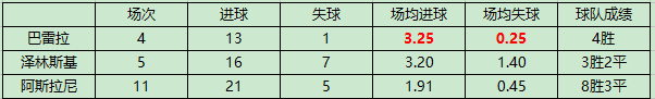可见,巴雷拉任后腰时,球队进球最多,失球最少。泽林斯基和阿斯拉尼任后腰时则各有优势,前者进球多,后者失球少。