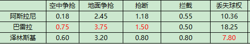 防守侧的表现: