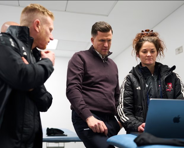 尽管开局有希望,但到中场休息时,埃克塞特城已经落后四球。考德威尔的声音在球员通道中回荡,从更衣室里都能听到他走近的声音。球员们有几分钟的时间独处,而教练组的成员们则围在表现分析主管劳伦-琼斯的笔记本电脑旁查看她的分析结果。