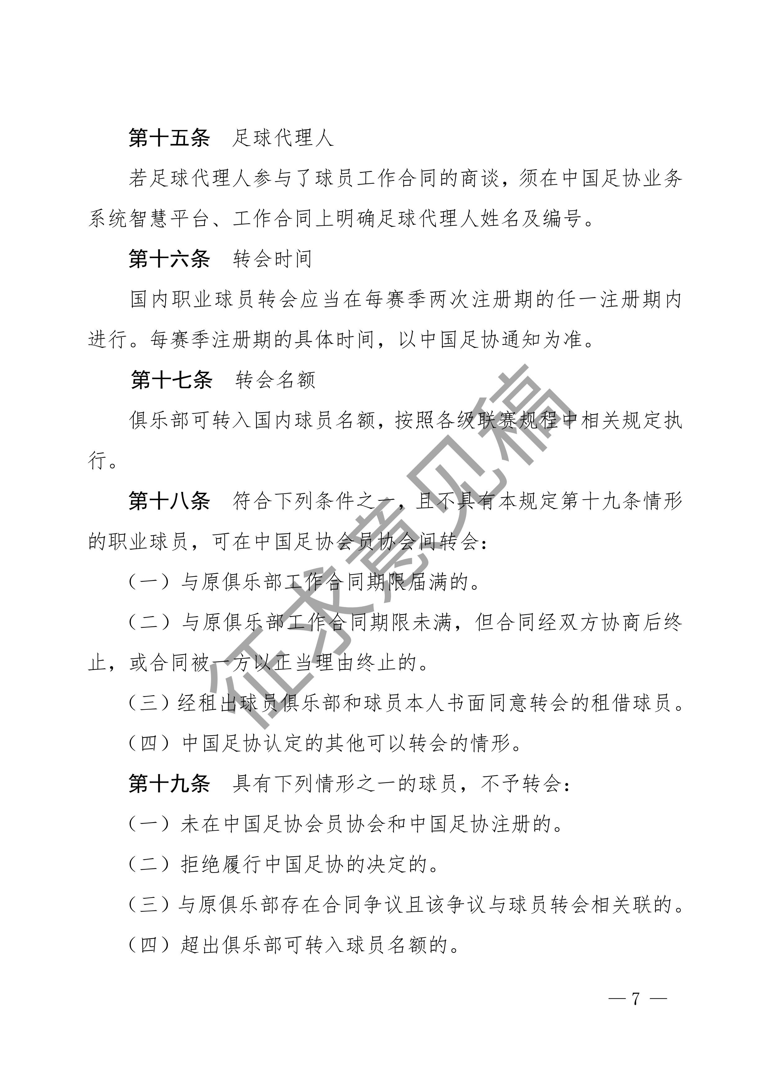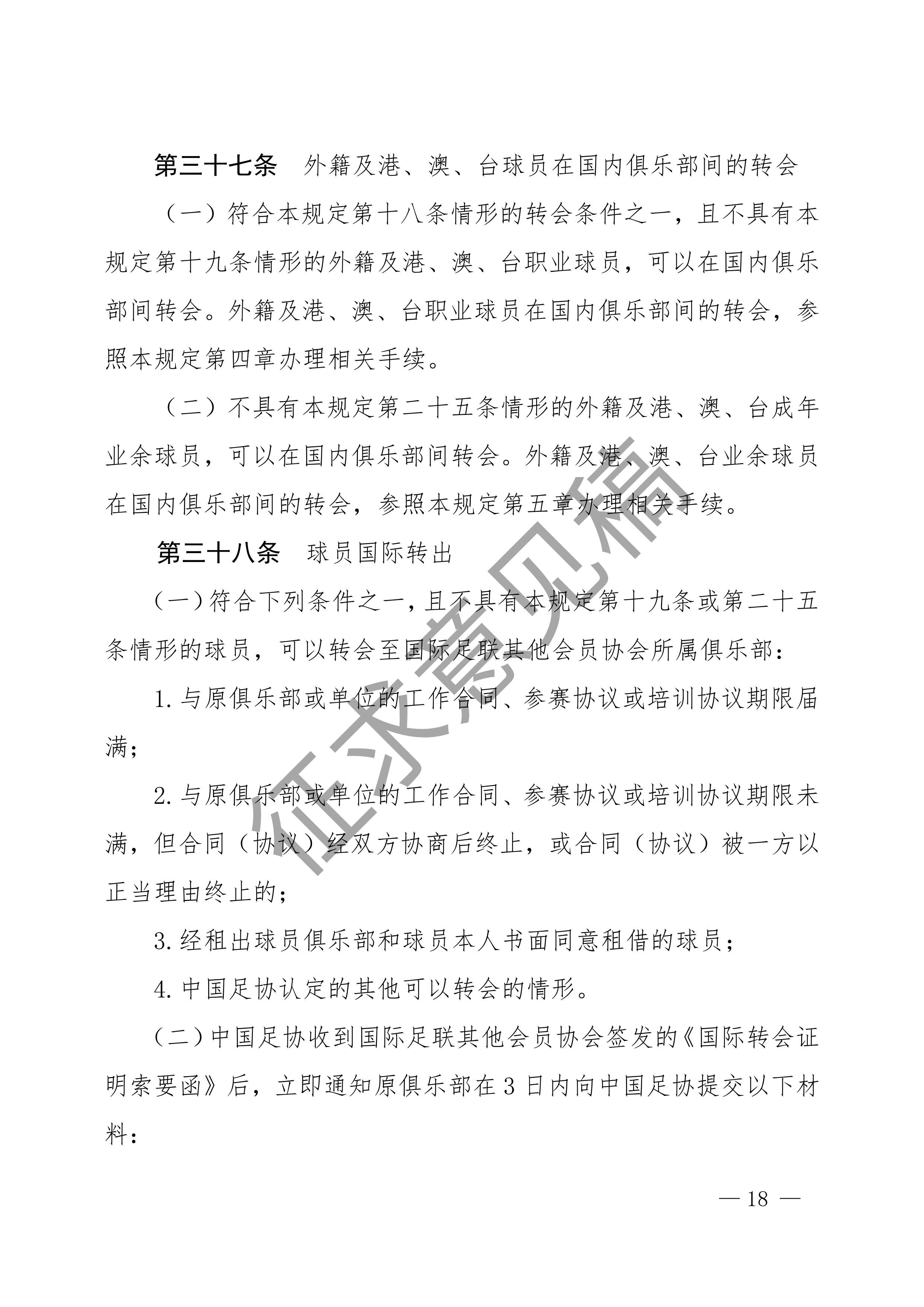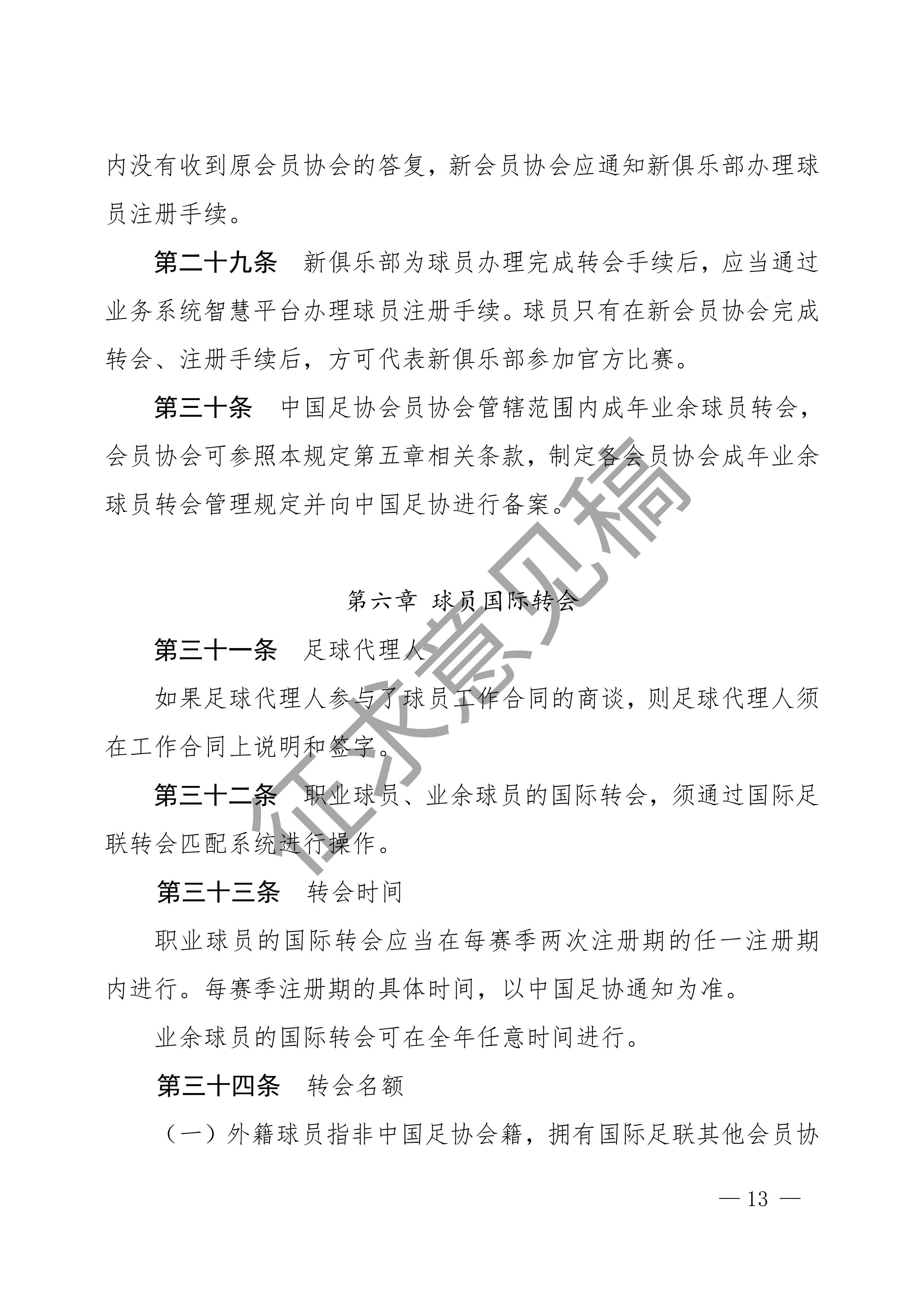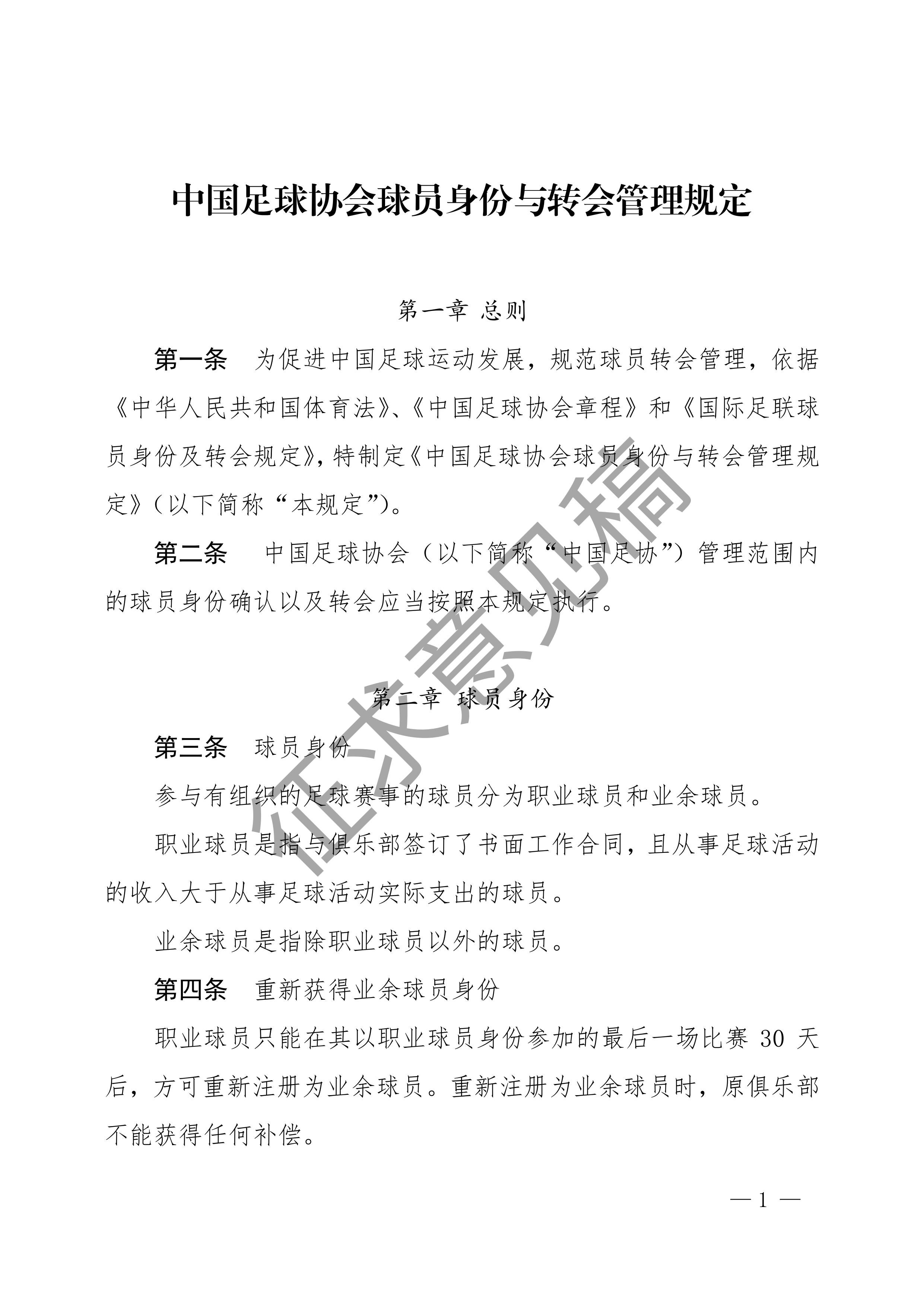 中国足球协会球员身份与转会管理规定征求意见稿
