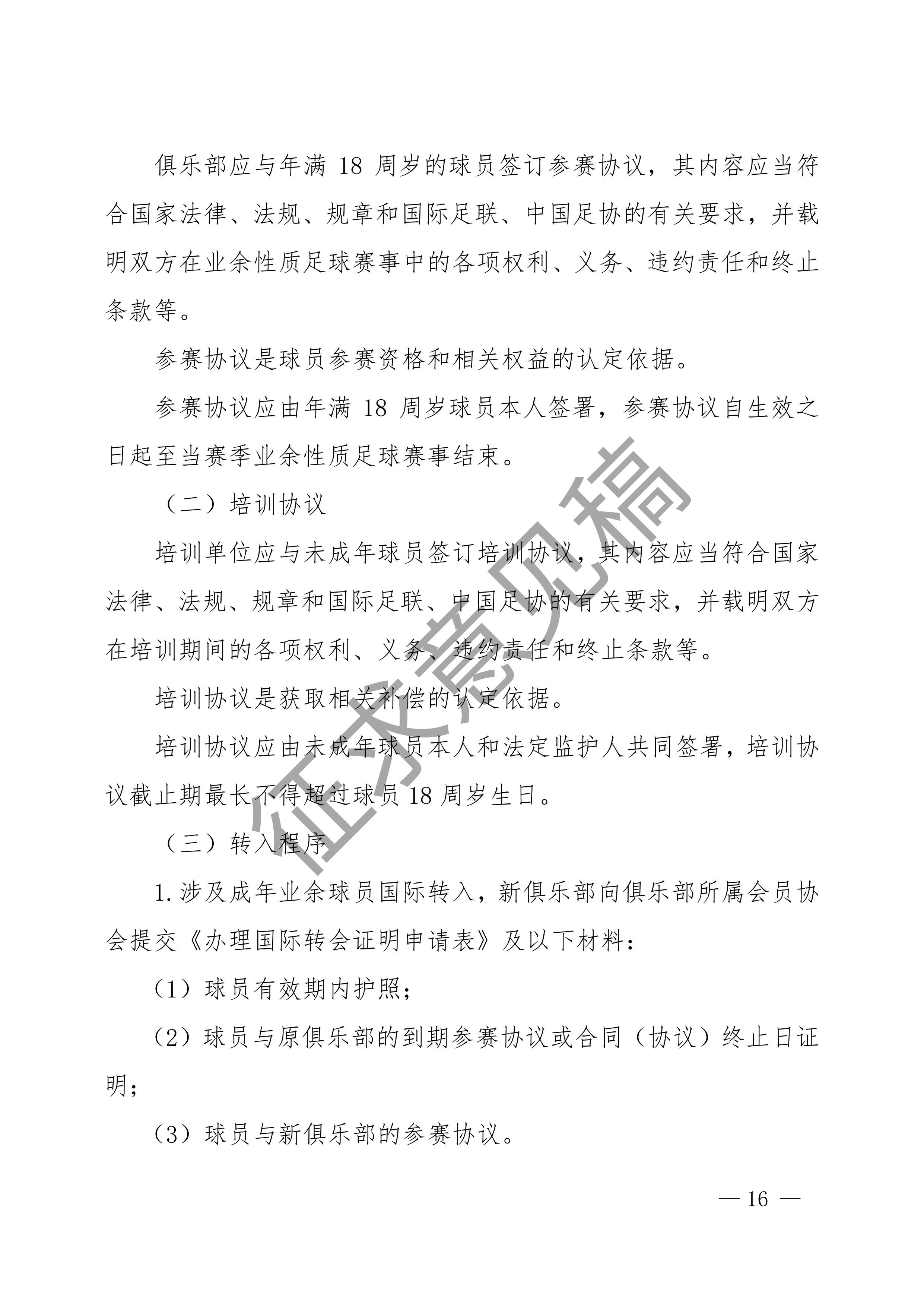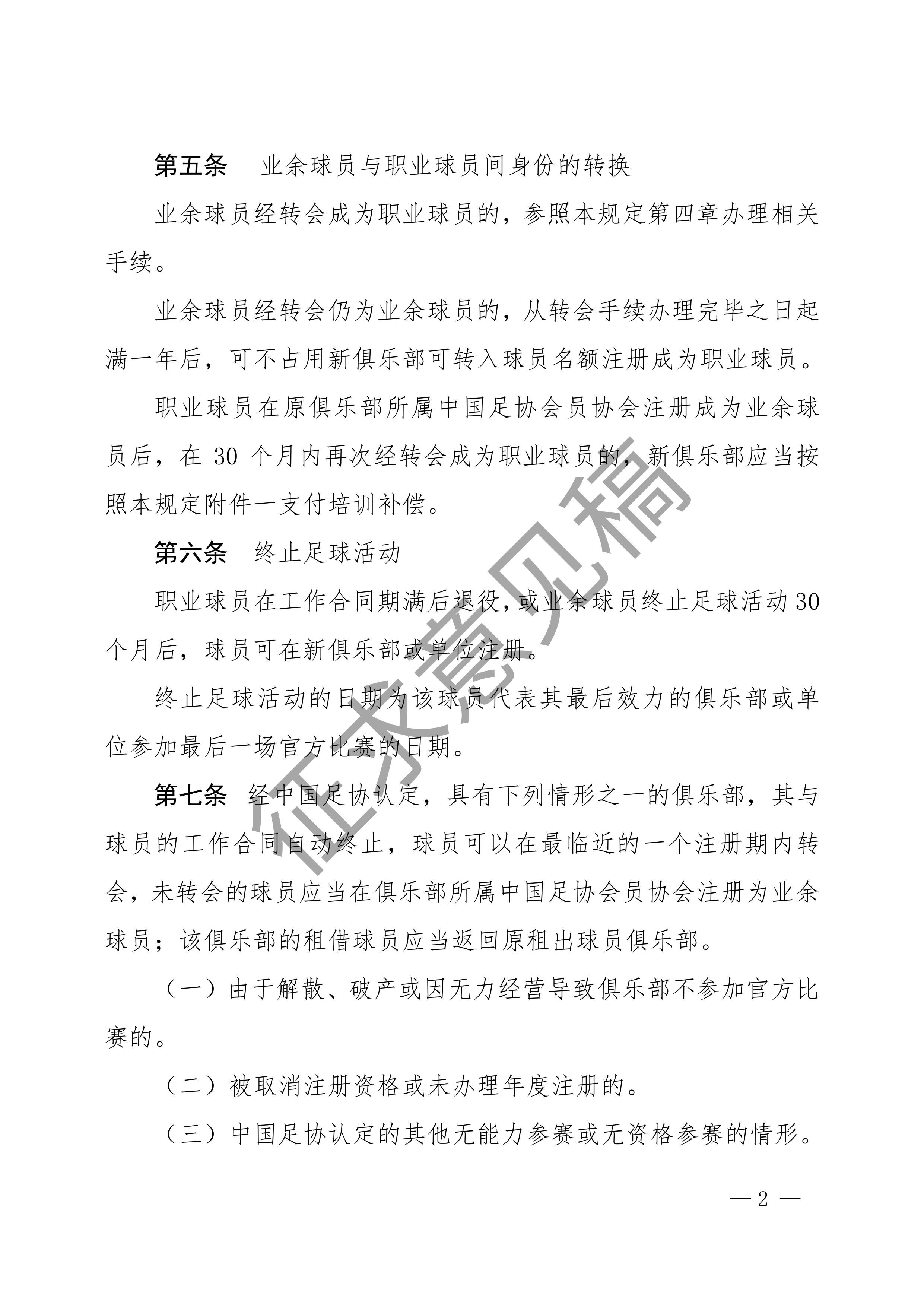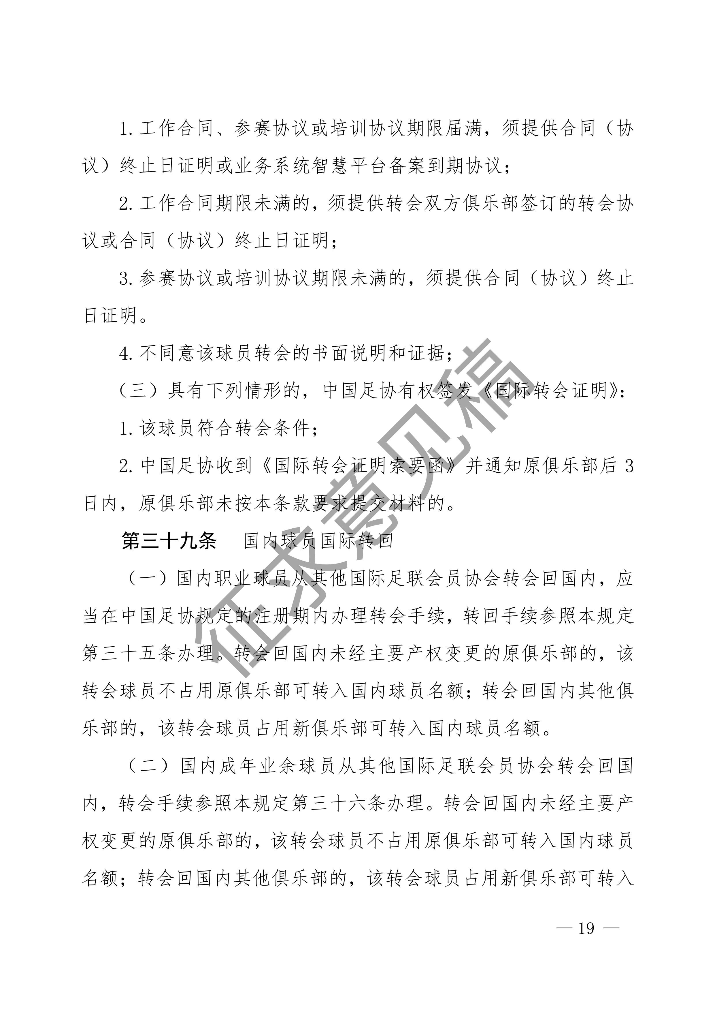 中国足球协会球员身份与转会管理规定征求意见稿