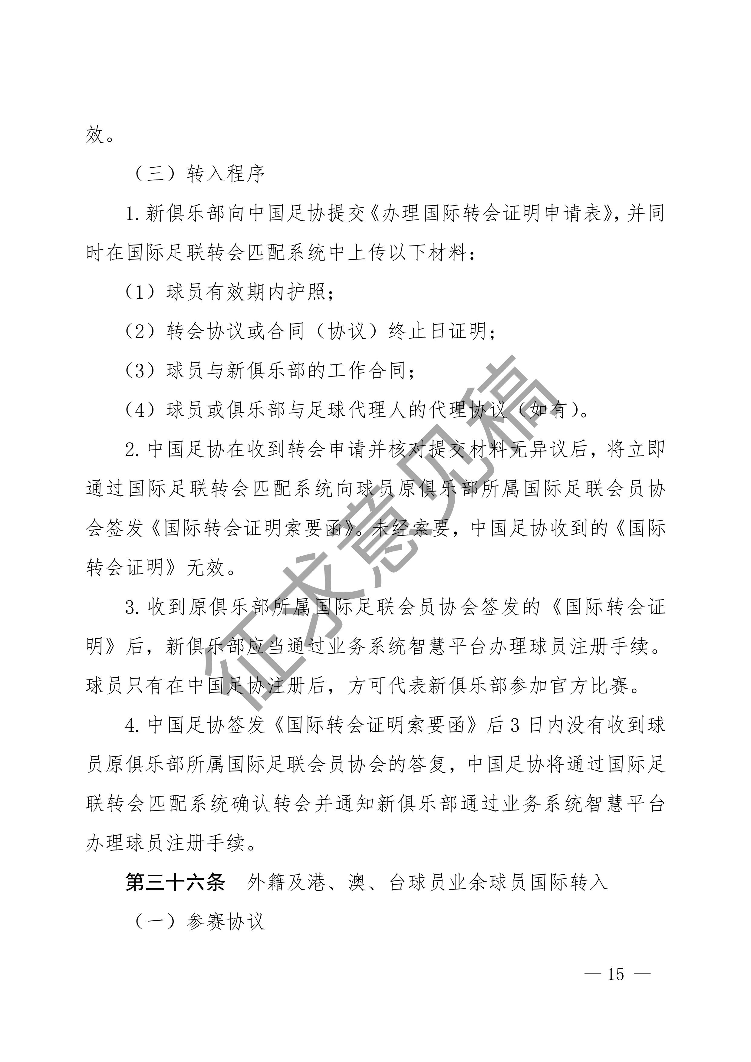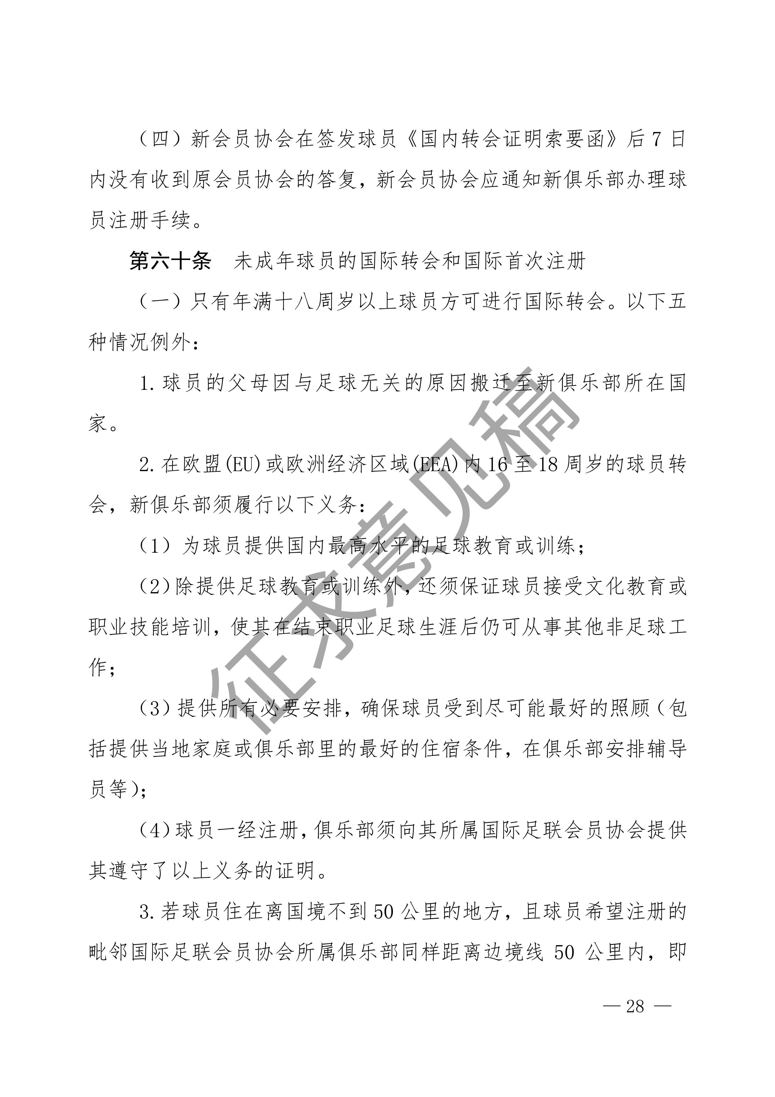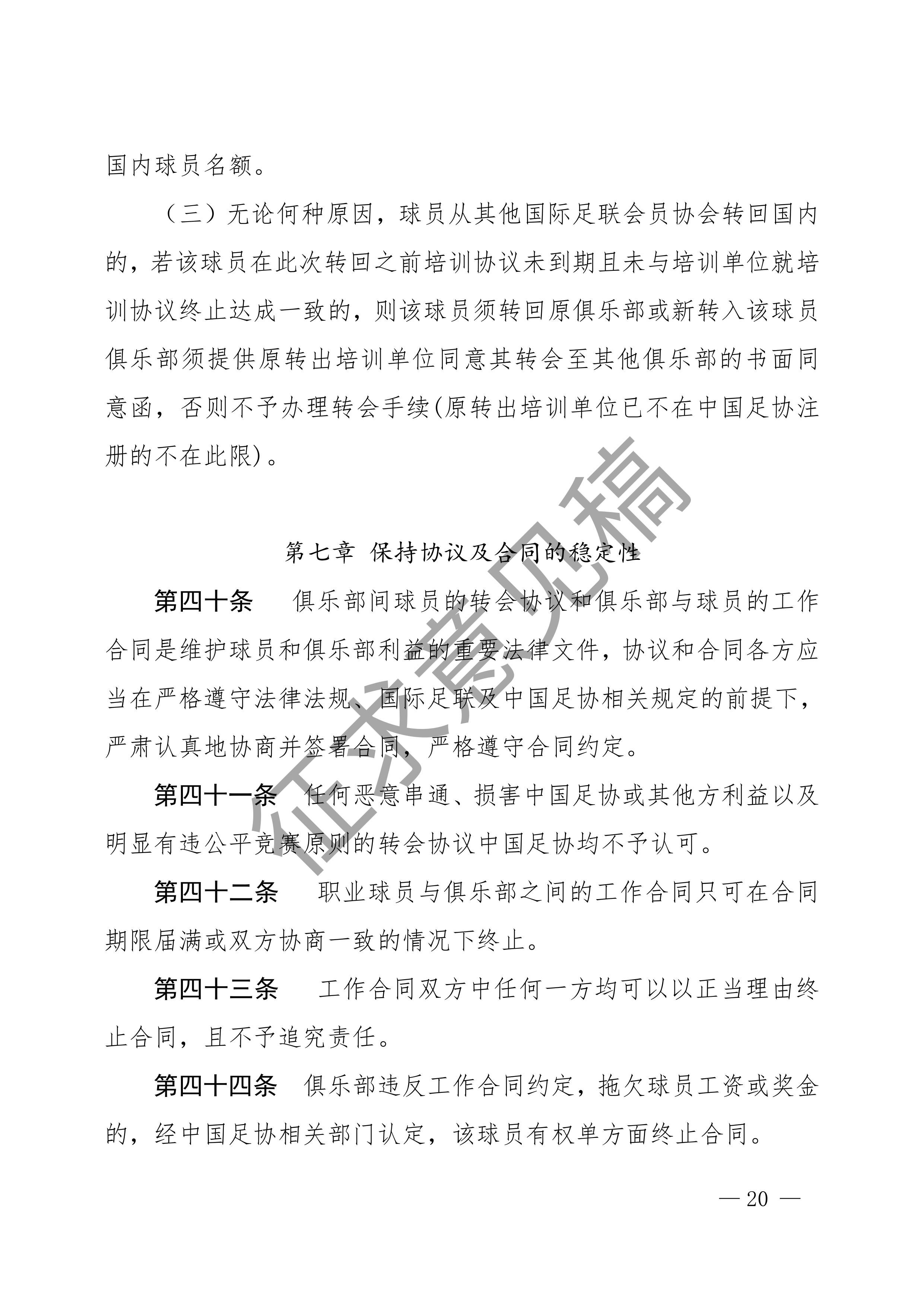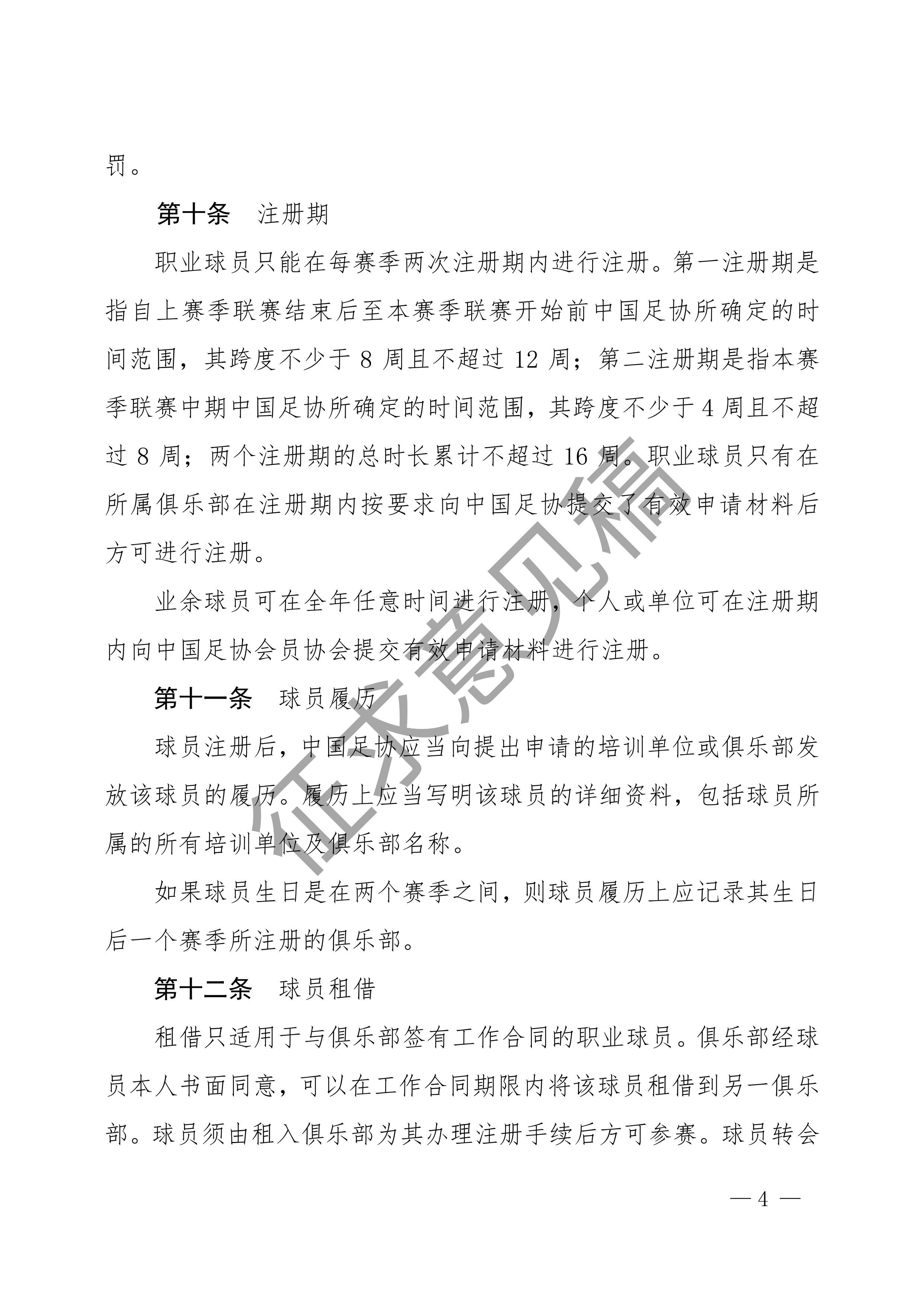 中国足球协会球员身份与转会管理规定征求意见稿