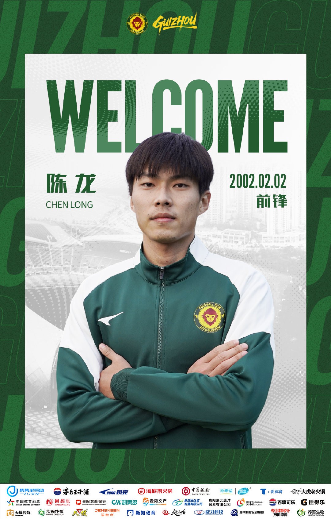 欢迎陈龙加入贵州筑城竞技大家庭,让我们一起凝心聚力,为贵州而战!