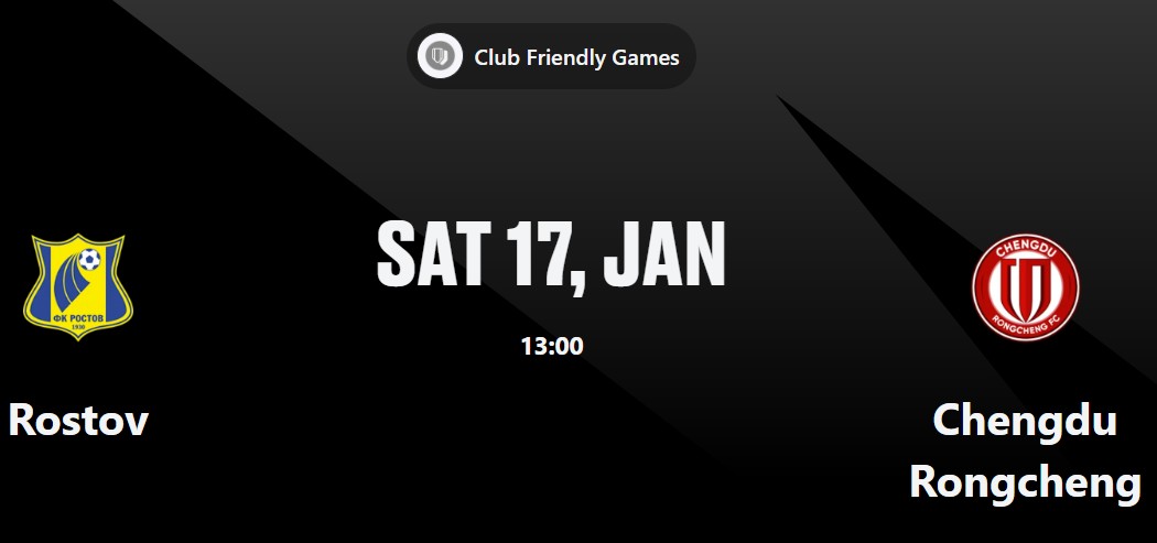 据比赛数据网站ONEFOOTBALL显示,正在阿联酋进行冬训的成都蓉城,将于北京时间1月18日0:00与俄超球队罗斯托夫进行一场热身赛。