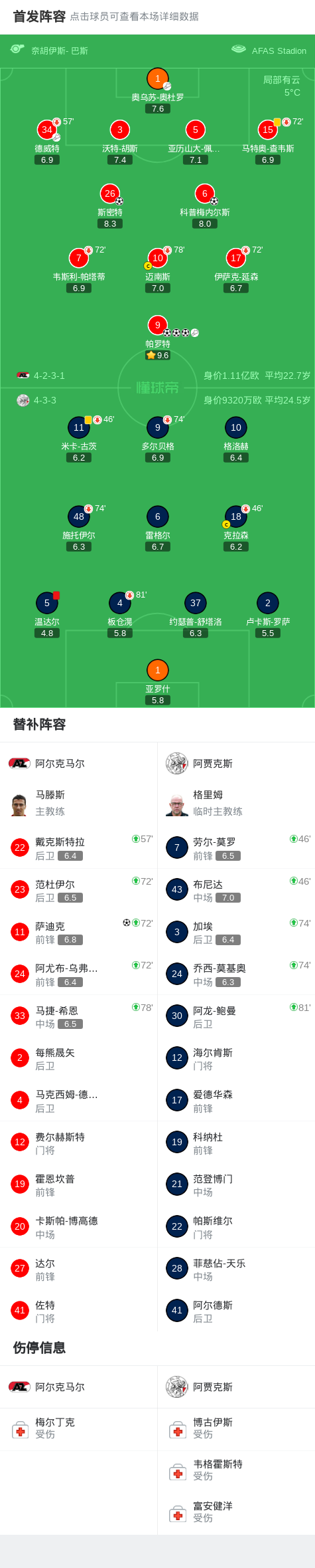 第33分钟,阿尔克马尔球员奥乌苏-奥杜罗助攻帕罗特打入一球。