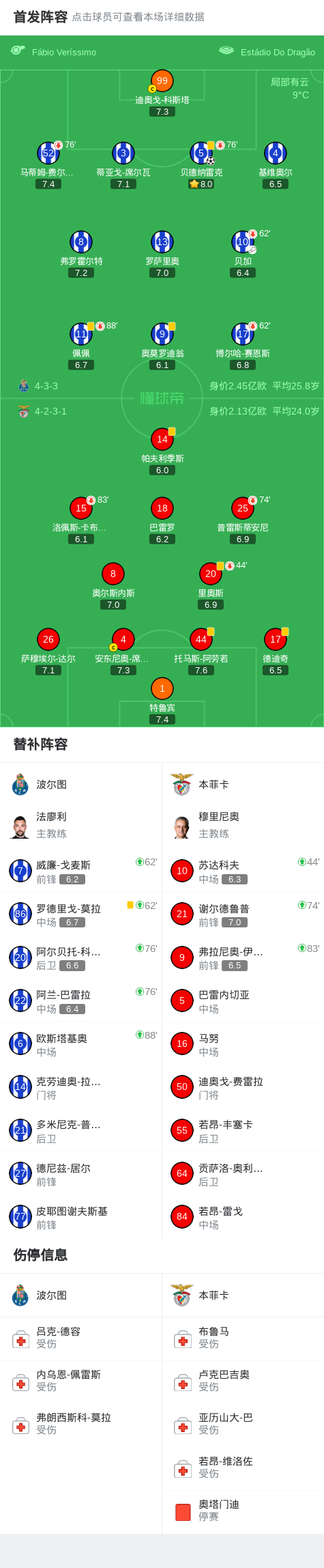 波尔图1-0本菲卡,贝德纳雷克一锤定音