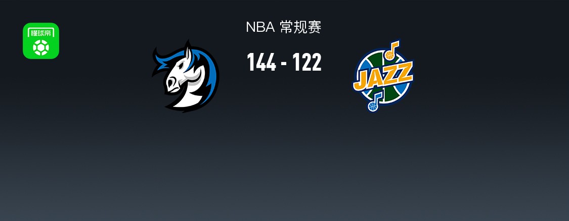 第四节独行侠杰登-哈迪拿下10分,爵士森萨博拿下17分,最终独行侠144-122战胜爵士