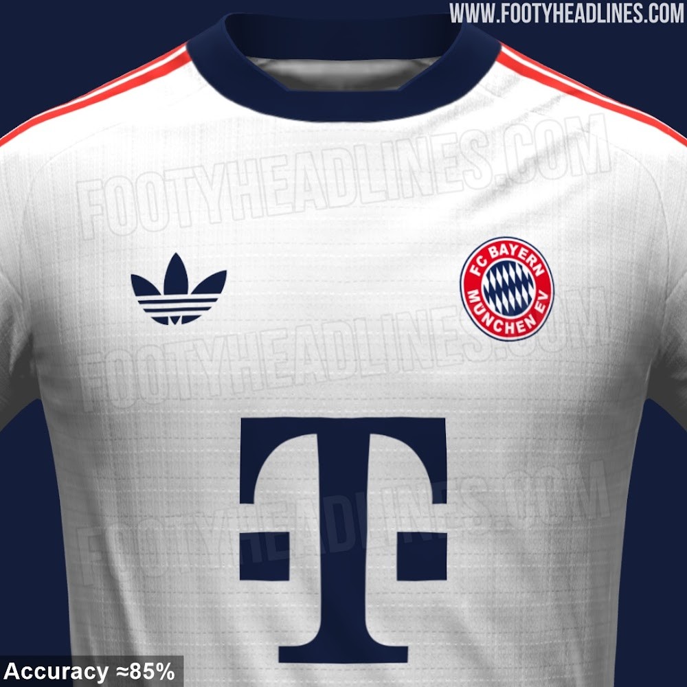 近日,足球装备网站Footyheadlines曝光了拜仁下赛季客场球衣的谍照,引发球迷和媒体的广泛关注。新球衣以白色为主色,搭配藏青色和红色作为辅色,整体设计简洁大气,同时融入了经典与复古元素,被不少球迷称为“多年来最佳的客场球衣”。