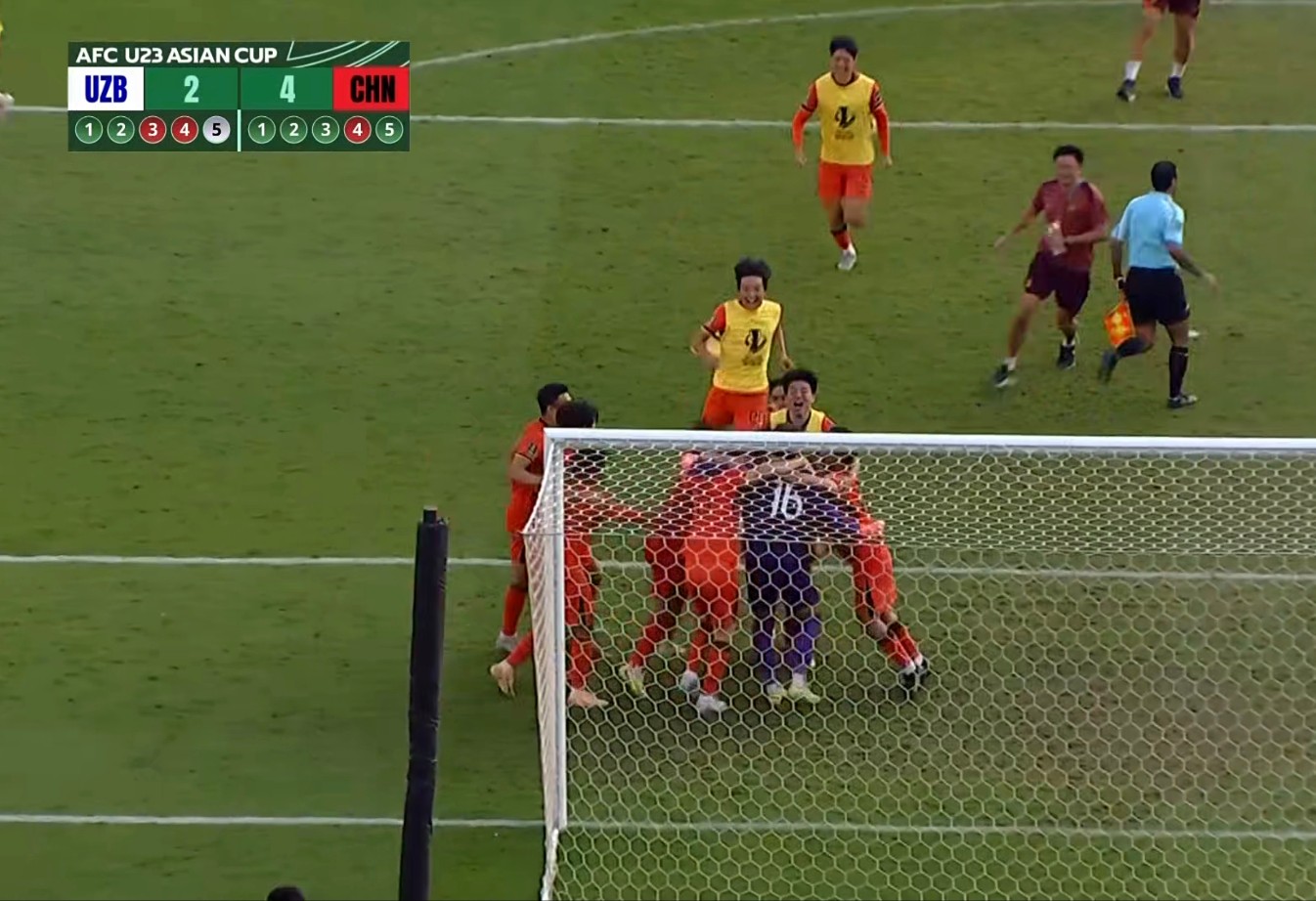 主持人韩乔生:“没有什么不可能”!!!创造历史!创造奇迹!历史首进四强!常规时间U23国足0-0逼平U23乌兹别克斯坦,加时赛咱们持续死守逼平。点球大战,咱们球员可是过了一把射门的瘾啊!质量都很高,李昊虽然有伤在身,也是延续了门神本色!当然教练组的小纸条也很关键!这场咱们给的防守强度很高,逼的对手只能“有枣没枣,先打三杆子”,就咱着万里长城般的铁桶阵➕李昊,攻了一整场的乌兹别克斯坦约到后面心态越急了。咱们后面也收获了不少反击的机会,但还是老问题,这带球啊…从小组赛到淘汰赛,咱们是常规时间➕加时唯一没有被进球的国家队。U23小伙们,证明了死守能行。没有什么难不难看的,我们的实力就是如此,先保证不输,再想着怎么赢得事儿吧!下周二,我们再见!加油!加油!加油!