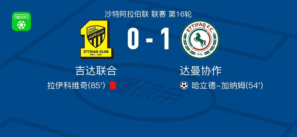 北京时间1月17日沙特阿拉伯联 联赛 第16轮,吉达联合主场对阵达曼协作。达曼协作哈立德-加纳姆破门。最终比分吉达联合 0–1 达曼协作。