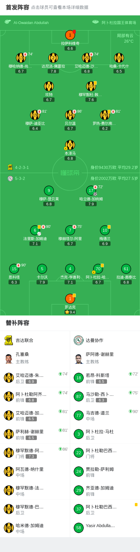 第85分钟,吉达联合球队拉伊科维奇吃到红牌。