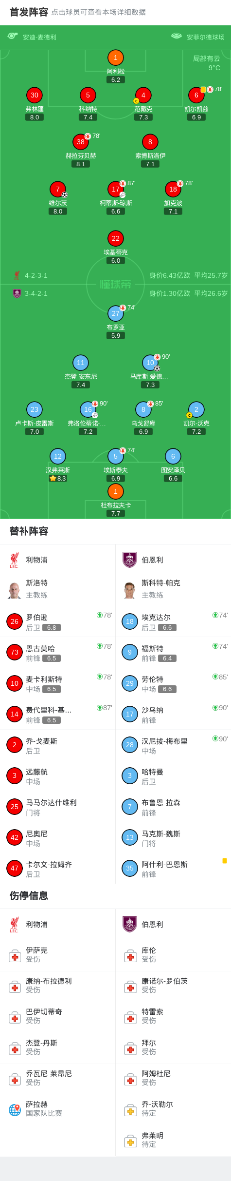 北京时间1月17日,英格兰足球顶级联赛第22轮,利物浦主场对阵伯恩利。比赛中,加克波造点,索博斯洛伊主罚点球击中横梁,维尔茨乱战破门,马库斯-爱德华兹扳平比分。最终,双方1-1战平。